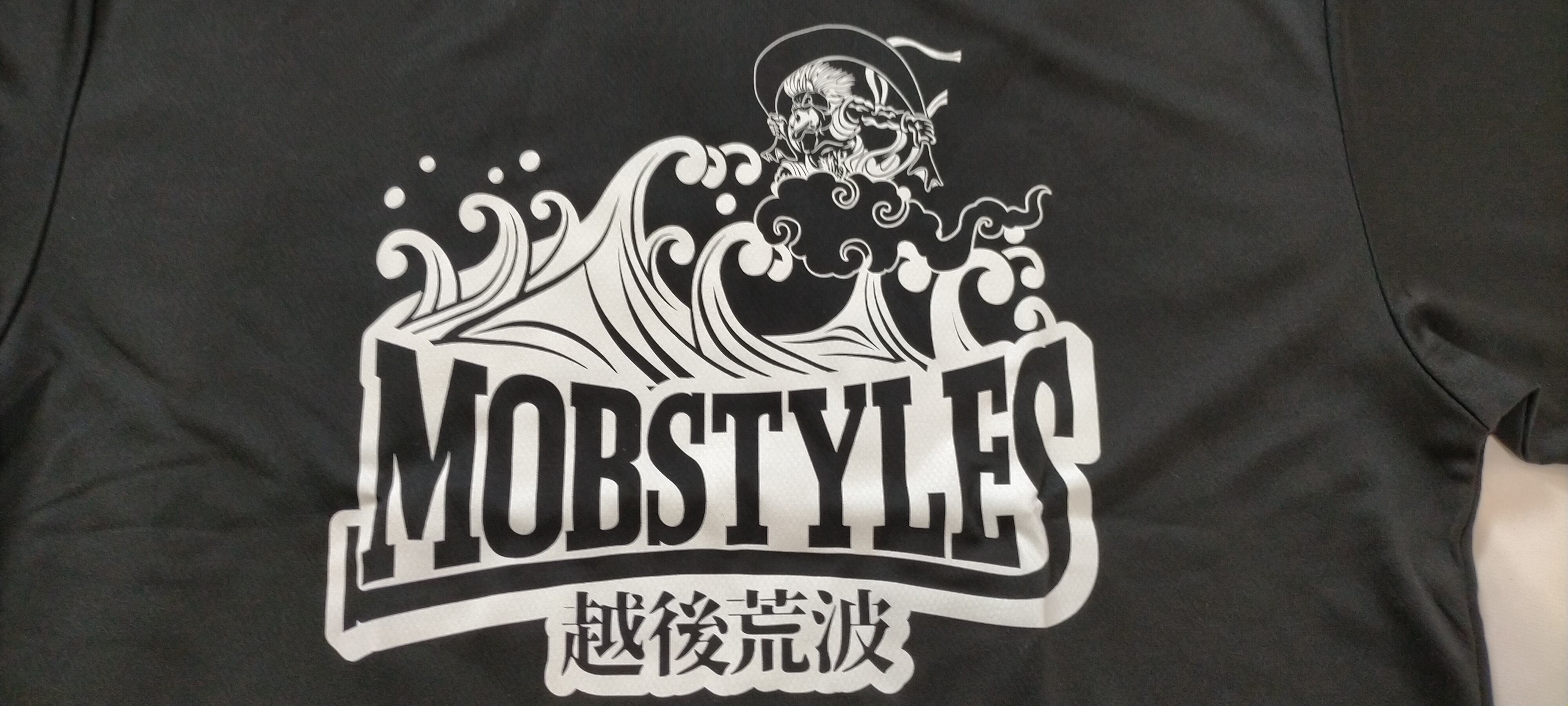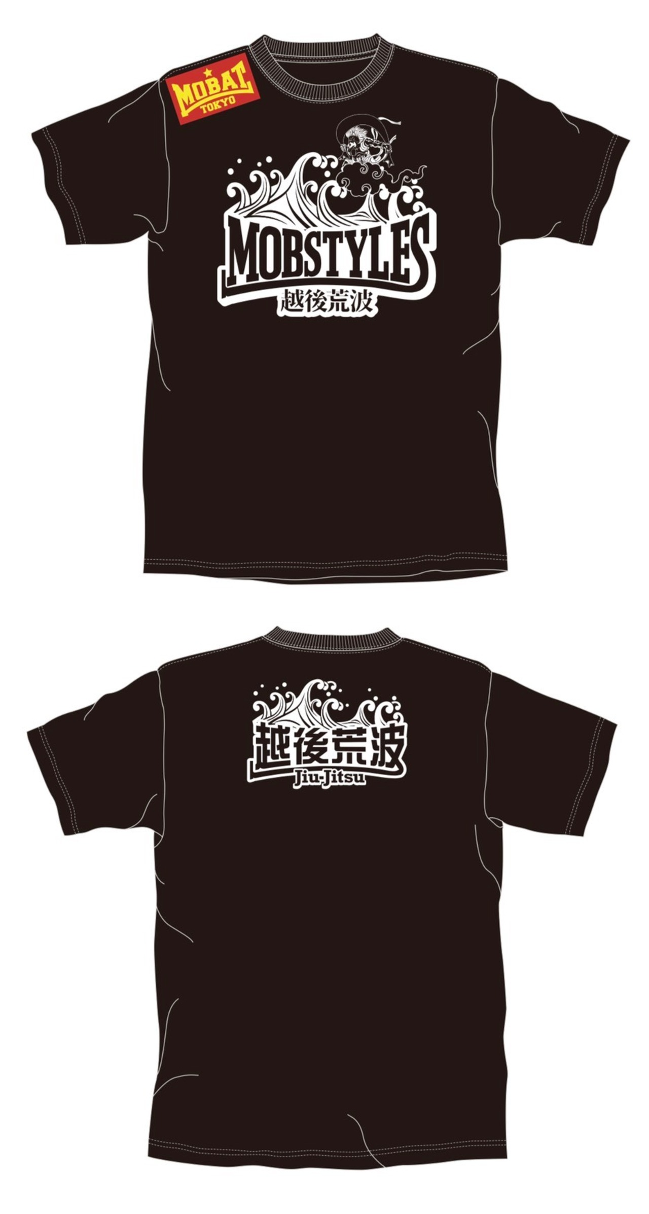 MOBSTYLES(モブスタイルス)のオリジナルTシャツです。新潟で行われている越後荒波というプロ柔術Tシャツです。日本海の荒波に風神が乗るという斬新なデザインです!