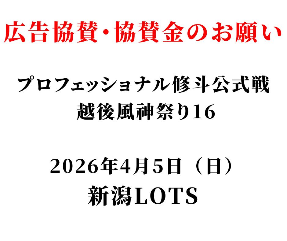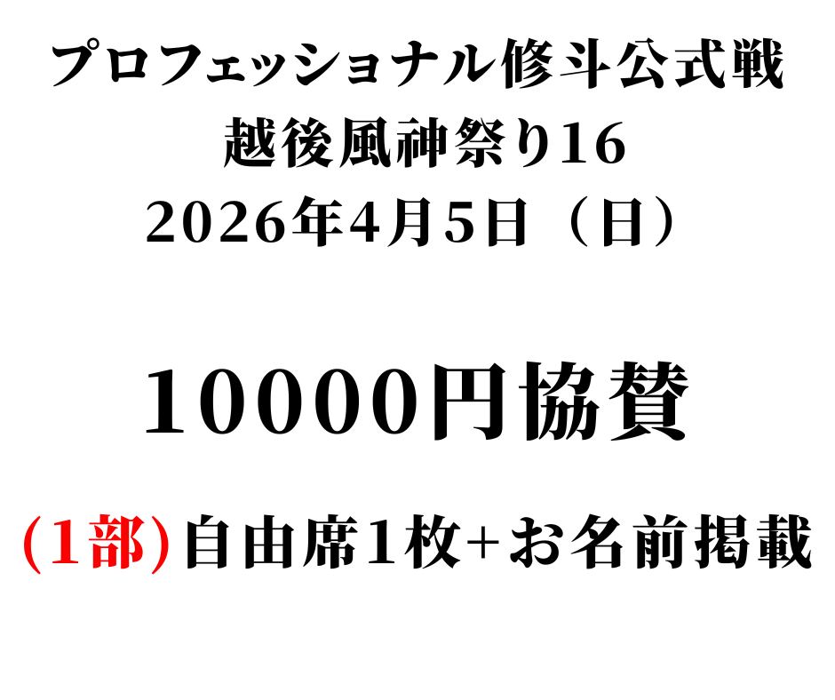 ☆1万円応援プラン☆プロフェッショナル修斗公式戦「越後風神祭り16」