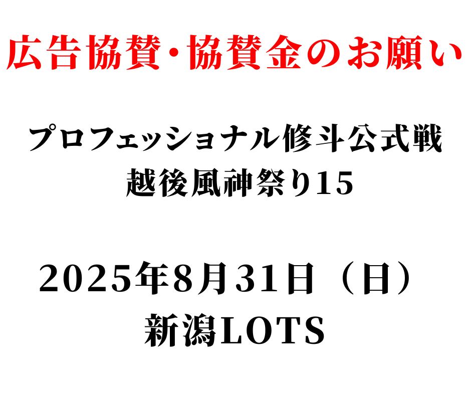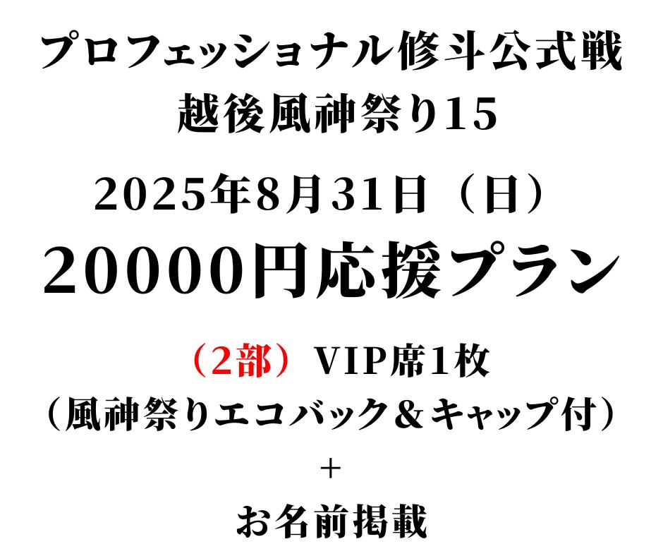 ☆2万円応援プラン☆プロフェッショナル修斗公式戦「越後風神祭り15」 [開催日]2025年8月31日(日)