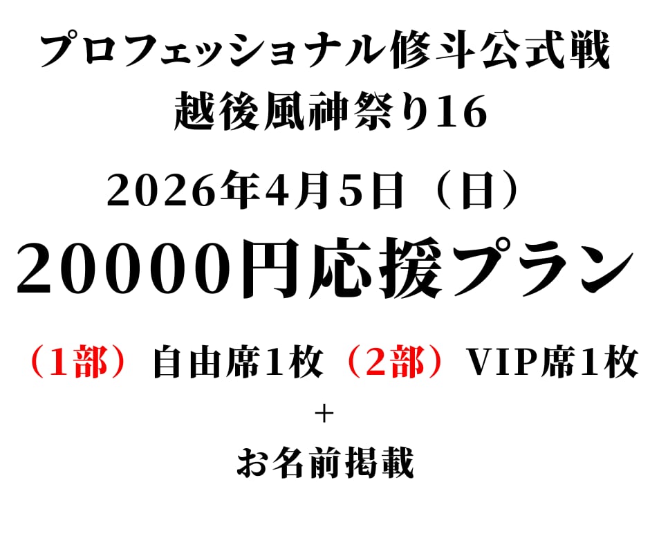 ☆2万円応援プラン☆プロフェッショナル修斗公式戦「越後風神祭り16」